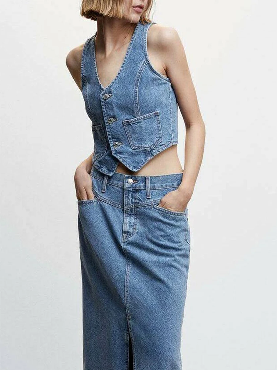 Vintage Blue Holes Big Pocket Deni..