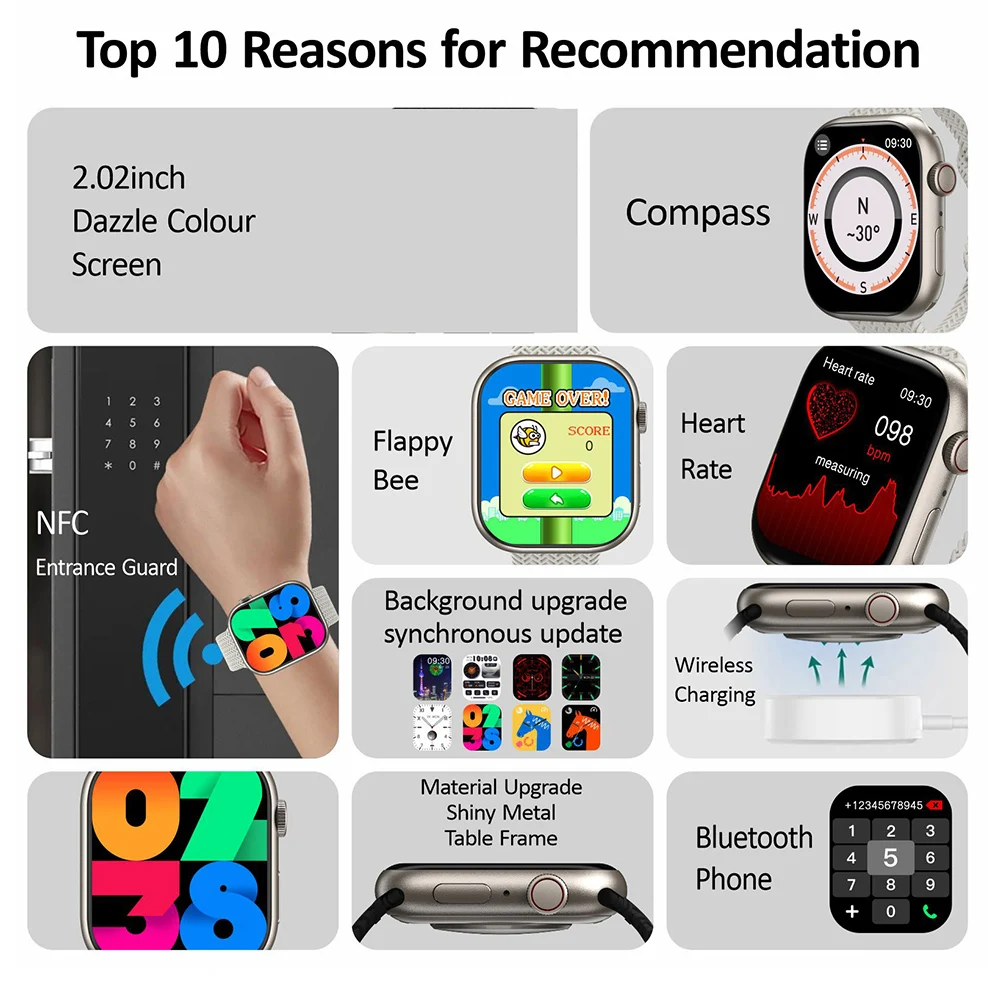 HK9 PRO ½º¸¶Æ® ¿öÄ¡ äÆÃ GPT, ¾Æ¸ô·¹µå ¹«¼± ÃæÀü, ºí·çÅõ½º ÅëÈ­, ³ªÄ§¹Ý ½ºÆ®·¦ Àá±Ý, ½Ã¸®Áî 8, NFC, ³²³à°ø¿ë, 2.02 ÀÎÄ¡-Freehip.co.kr