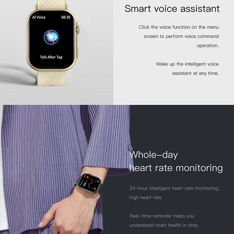 ½º¸¶Æ® ¿öÄ¡ ³²³à°ø¿ë ºí·çÅõ½º ÅëÈ­, ½É¹Ú¼ö AI À½¼º ¿þ¾î·¯ºí ÀåÄ¡, ½º¸¶Æ®¿öÄ¡, 2.01 ÀÎÄ¡ HD ´ëÇü ½ºÅ©¸°, ZL80