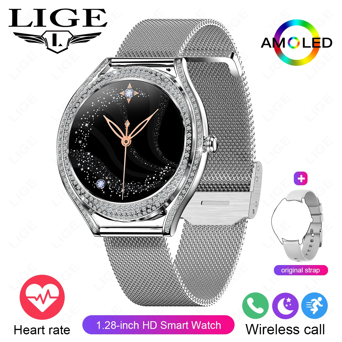 LIGE ¿©¼º¿ë ·°¼Å¸® ½º¸¶Æ® ¿öÄ¡, AMOLED ºí·çÅõ½º ÅëÈ­, IP67 ¹æ¼ö, ½ºÆ÷Ã÷ ÇÇÆ®´Ï½º, ¿©¼º¿ë ½º¸¶Æ®¿öÄ¡, ¾Èµå·ÎÀ̵å iOS¿ë, 1.28 ÀÎÄ¡