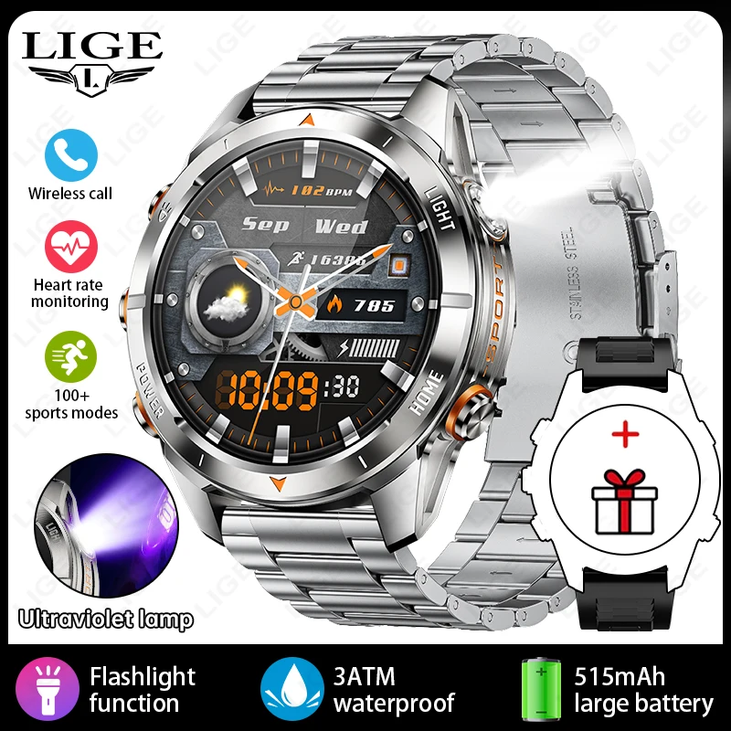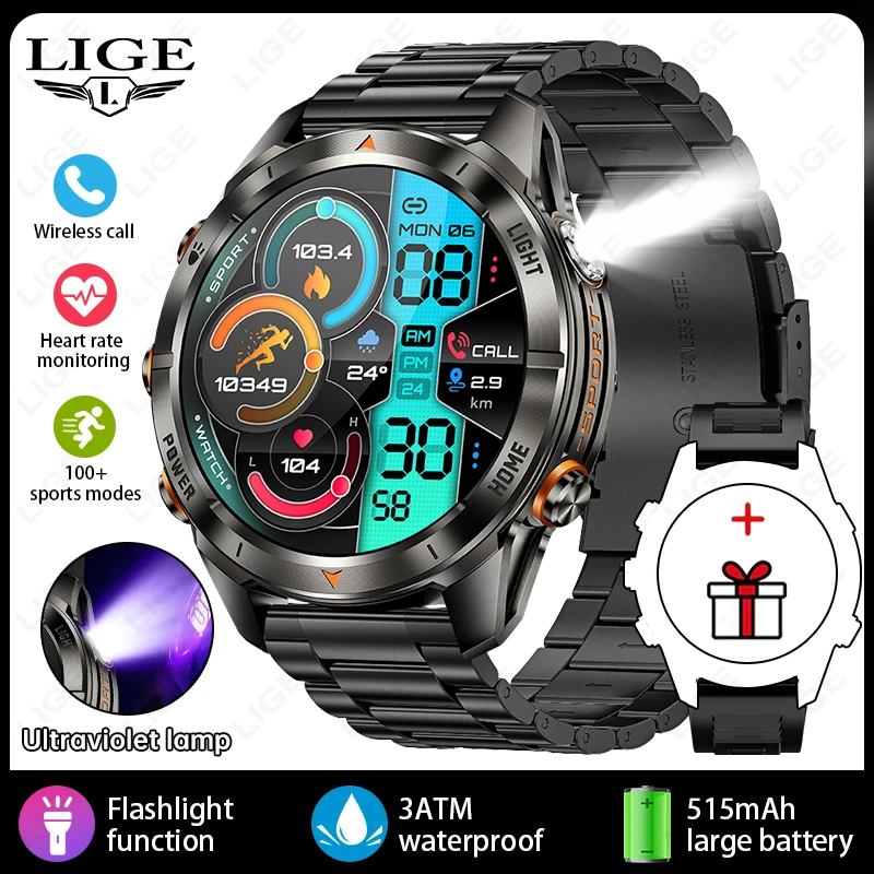 LIGE »õ·Î¿î ¾ß¿Ü ±º»ç ³²ÀÚ ½º¸¶Æ® ½Ã°è ºí·çÅõ½º ÅëÈ­ 1.46 HD È­¸é 515mAh ¹èÅ͸® LED ¼ÕÀüµî 3ATM ¹æ¼ö Smartwatch
