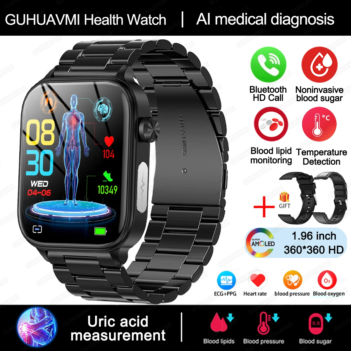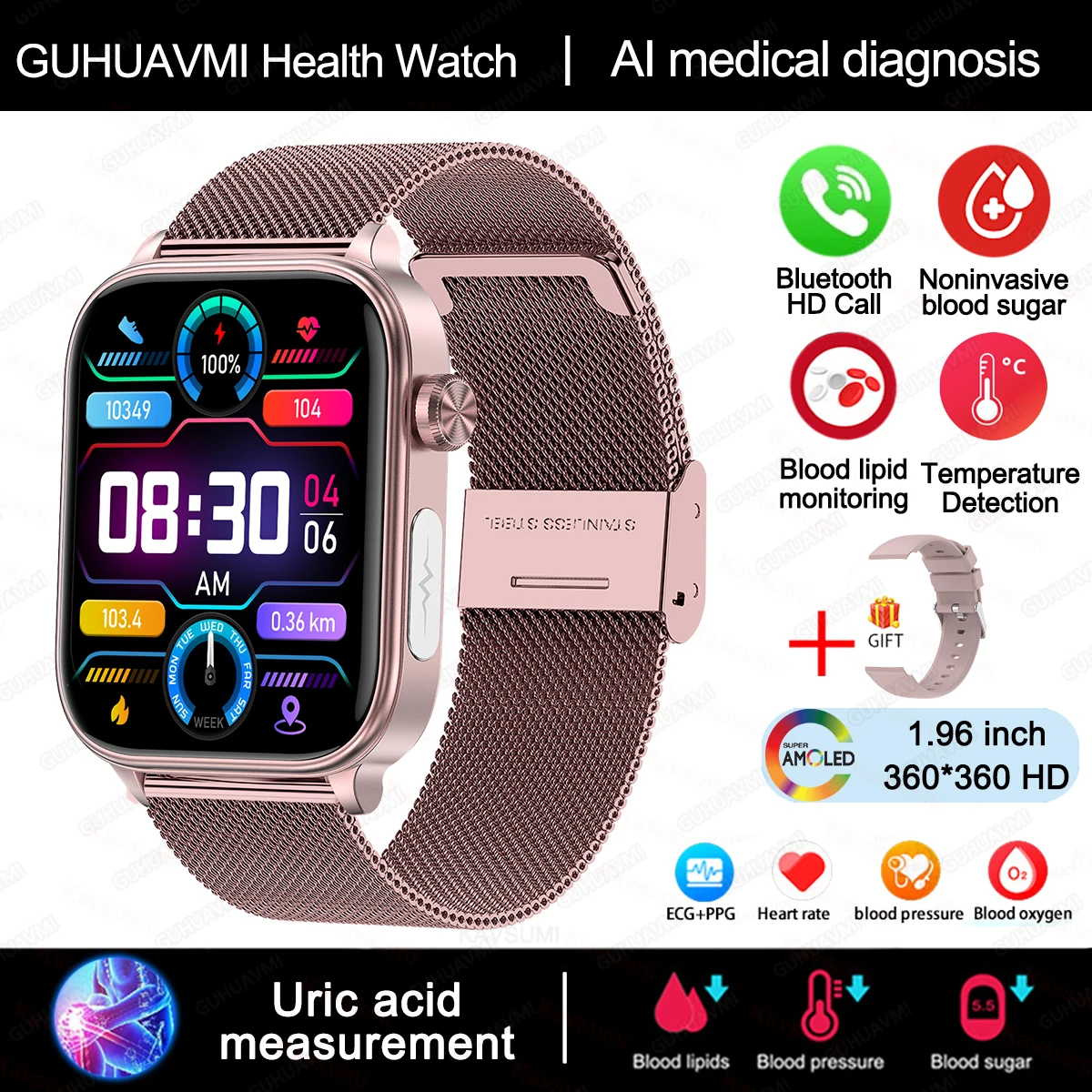 ¿©¼º¿ë ÀÇ·á µî±Þ °Ç°­ ½º¸¶Æ® ¿öÄ¡, AMOLED ECG, ½Åü °Ë»ç, Ç÷´ç, Áö¹æ ¿ä»ê, ½É¹Ú¼ö, BT ÅëÈ­ ½º¸¶Æ®¿öÄ¡