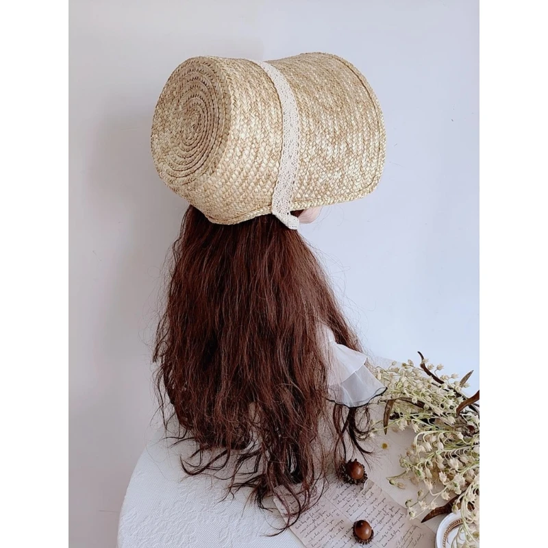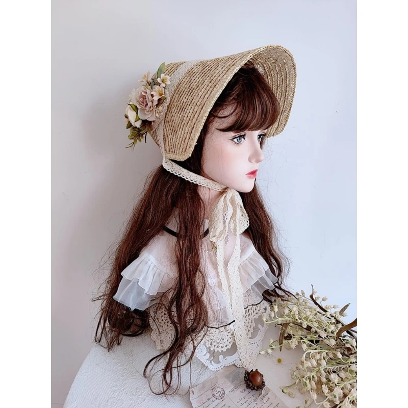 LolitaStyle ¿©¼º¿ë ¹Ð¤ ¸ðÀÚ ¼Ò³à ÇÁ¶û½º ½ºÅ¸ÀÏ Æ¼ ÆÄƼ ¸ðÀÚ ·¹À̽º ÆÐÄ¡ ¿öÅ© º¸´Ö Handwoven Sun Hat Summer Headgear