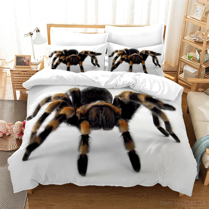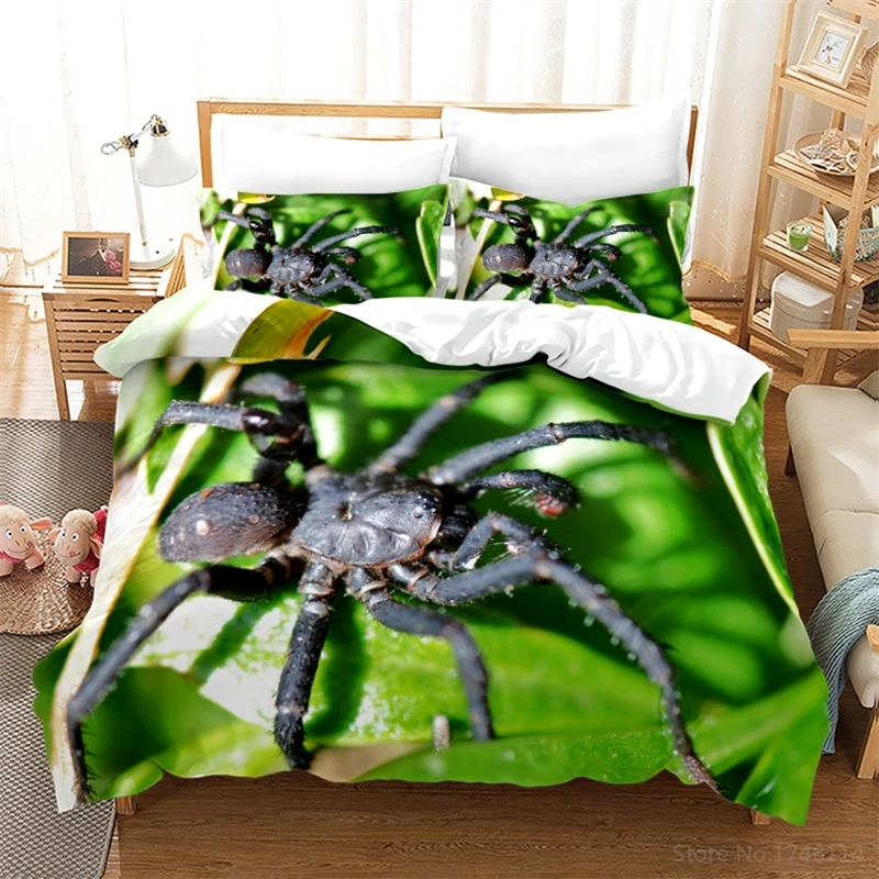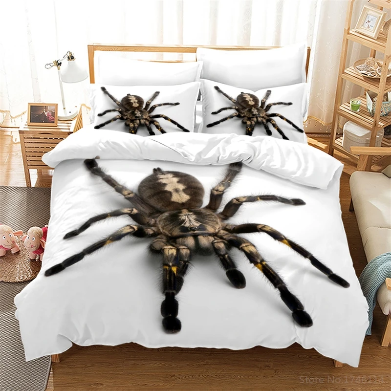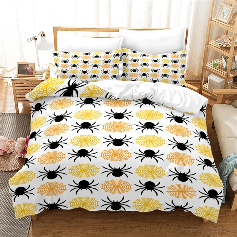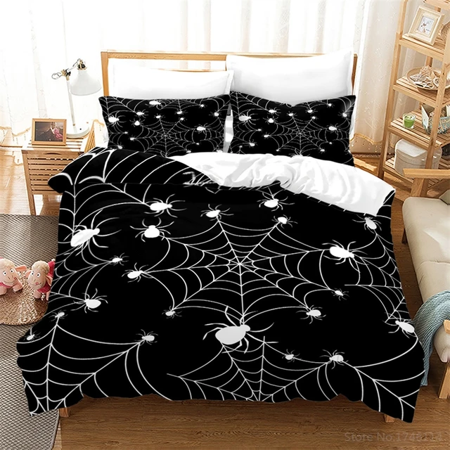 Black and White Bedding Set Spider Insect Animal Spiderweb Duvet Cover Set for Home Bedroom Decor Gift Twin Full Que