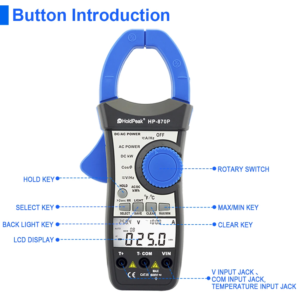 ÆÄ¿ö Ŭ·¥ÇÁ ¹ÌÅÍ HoldPeak Ȱ¼º Àü·Â ¿¡³ÊÁö Áø´Ü Å×½ºÅÍ, 870P (RU â°í), 99.99kW/100kW 300kW-Freehip.co.kr