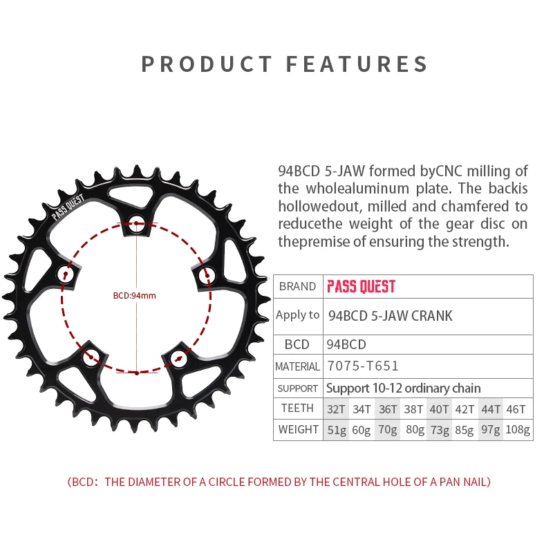 94BCD 5-Ŭ·Î ·Îµå ¹ÙÀÌÅ© ¶ó¿îµå Á¼Àº ¿ÍÀ̵å üÀθµ, 32T 34T 36T 38T 40T 42T 44T 46T, üÀÎÈÙ, »ê¾Ç ÀÚÀü°Å ½ºÇÁ·ÎŶ Å©·©Å©¼Â