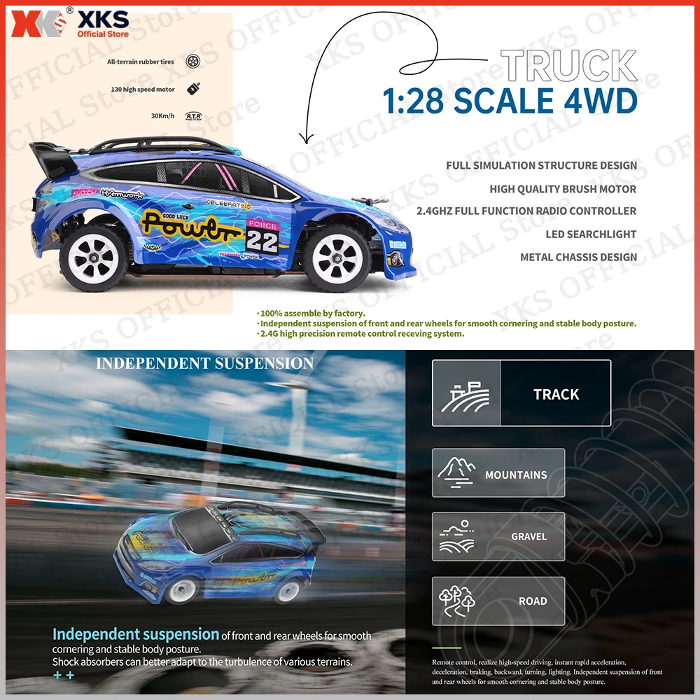 Wltoys XKS 284010 1/28 4X4 RCÄ« - 30Km/H °í¼Ó ¿ÀÇÁ·Îµå µå¸®ÇÁÆ® 2.4G °£¼· ¹æÁö LED Á¶¸í RC Àå³­°¨ ¼Ò³â¿ë ¼±¹°-Freehip.co.kr