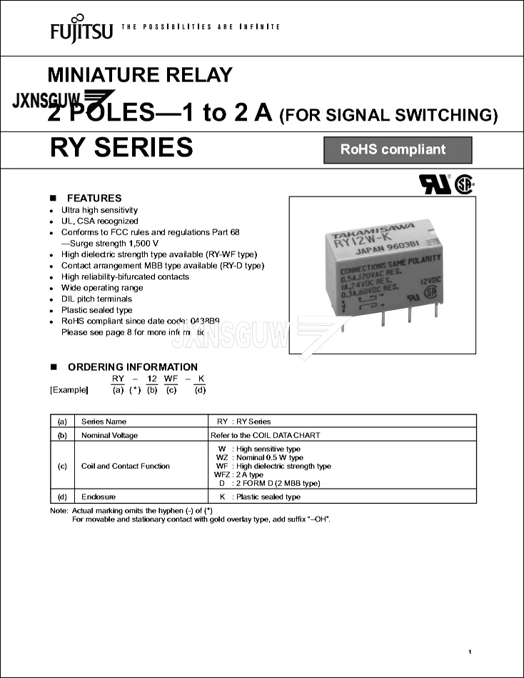10PCS ¸±·¹ÀÌ FUJITSU TAKAMISAWA RY5W-K RY12W-K RY ½Ã¸®Áî Àü¿ø ¸±·¹ÀÌ 5V 12V 1A 8PIN ¿Àµð¿À ½ÅÈ£ ¸±·¹ÀÌ-Freehip.co.kr