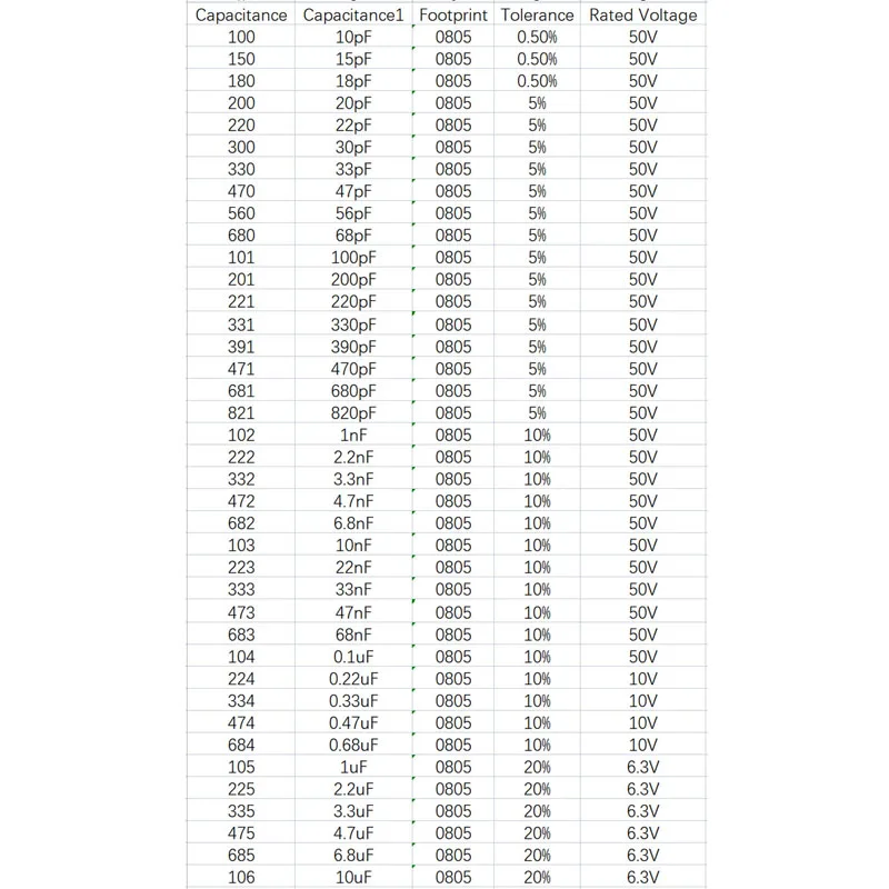 0805 SMD ijÆÐ½ÃÅÍ 1nF 102 10nF 103 0.1uF 104 1uF 105 10uF 106 18pF 56pF 390pF 4.7nF 0.22uF 0.33uF 500 uF 4.7uF 6.8uF, 0.