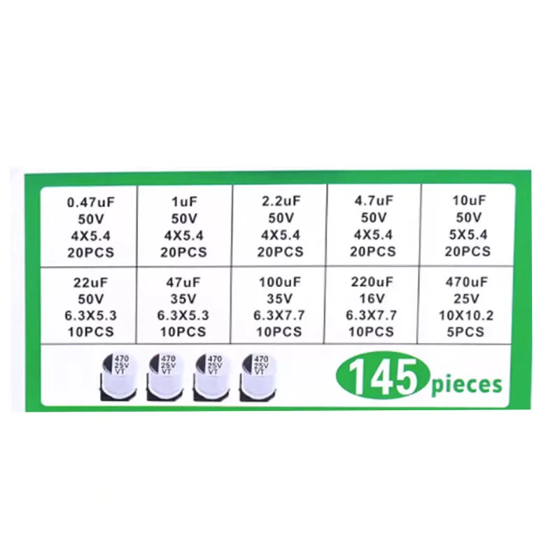 SMD ¾Ë·ç¹Ì´½ ÀüÇØ È¥ÇÕ ¼¼Æ®, ¾Ë·ç¹Ì´½ ÀüÇØ Ä¿ÆÐ½ÃÅÍ ¼¼Æ®, 0.47/1/2.2/4.7/10/22/47/100/220/470uf, 145 °³