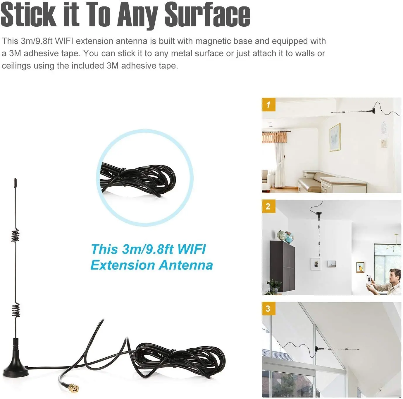 2 °³/¸ò 2.4Ghz Wifi ¾ÈÅ׳ª SMA ¿©¼º RP-SMA 2.4G IOT antena ÀÚ¼®º£À̽º »¡ÆÇ antenne 3 ¹ÌÅÍ ¿¬Àå ÄÉÀ̺í wi fi-Freehip.co.kr
