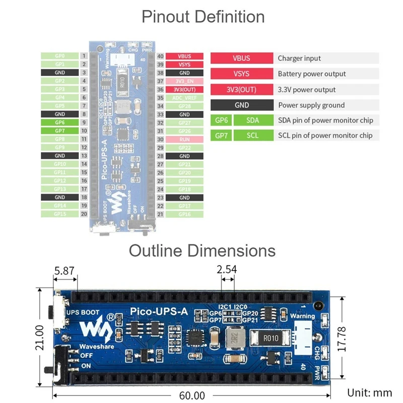 Waveshare-¶óÁ¸® ÆÄÀÌ ÇÇÄÚ¿ë UPS ¸ðµâ ¹èÅ͸® ÇÞ, ¹«Á¤Àü Àü¿ø °ø±Þ ÀåÄ¡ ¸ðµâ, I2C ÀÎÅÍÆäÀ̽º, 5V ÃæÀü Àü¾Ð