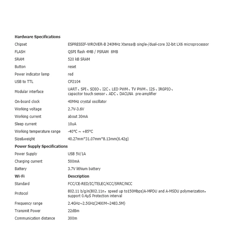 ¹Ì´Ï 32 È®Àå º¸µå ESP32-WROVER-B-PSRAM ¿ÍÀÌÆÄÀÌ ºí·çÅõ½º ¸ðµâ °³¹ß º¸µå-Freehip.co.kr