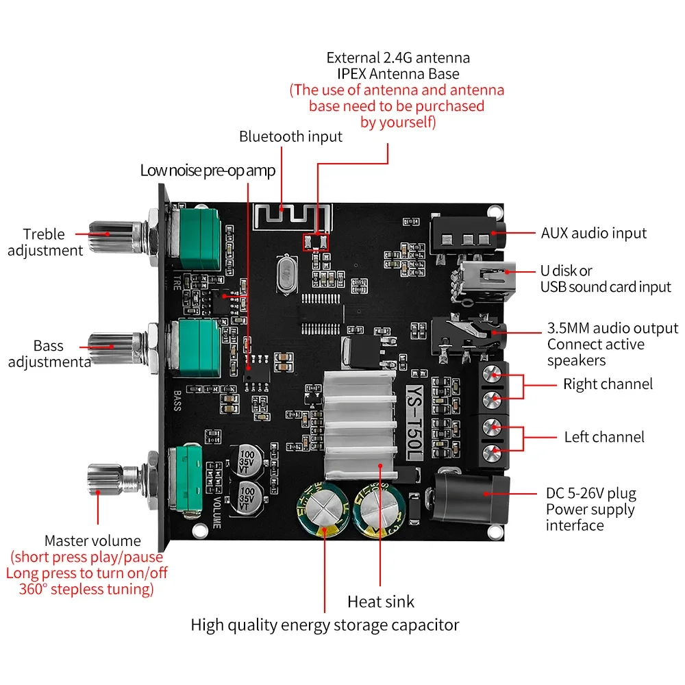 ÇÏÀÌÆÄÀÌ ¾ÚÇÁ ºí·çÅõ½º ä³Î 2.0 ½ºÅ×·¹¿À µðÁöÅÐ ÆÄ¿ö ¾ÚÇÁ ¸ðµâ, Àü¸é ÇÏÀÌ ¹× ·Î¿ì Åæ Á¶Á¤ XY-T50L, 100W-Freehip.co.kr