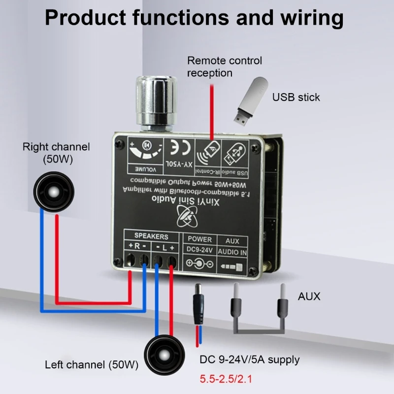 ºí·çÅõ½º ȣȯ ¾ÚÇÁ »ç¿îµå º¸µå, °íÃâ·Â ¾ÚÇÁ ¸ðµâ, ´ÙÁß ÀÔ·Â ÀÎÅÍÆäÀ̽º, 50W x 2 Ãâ·Â, DC9-24V/5A