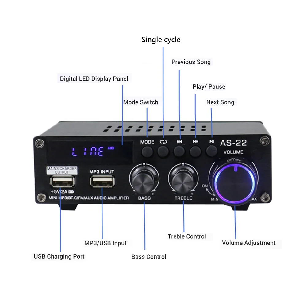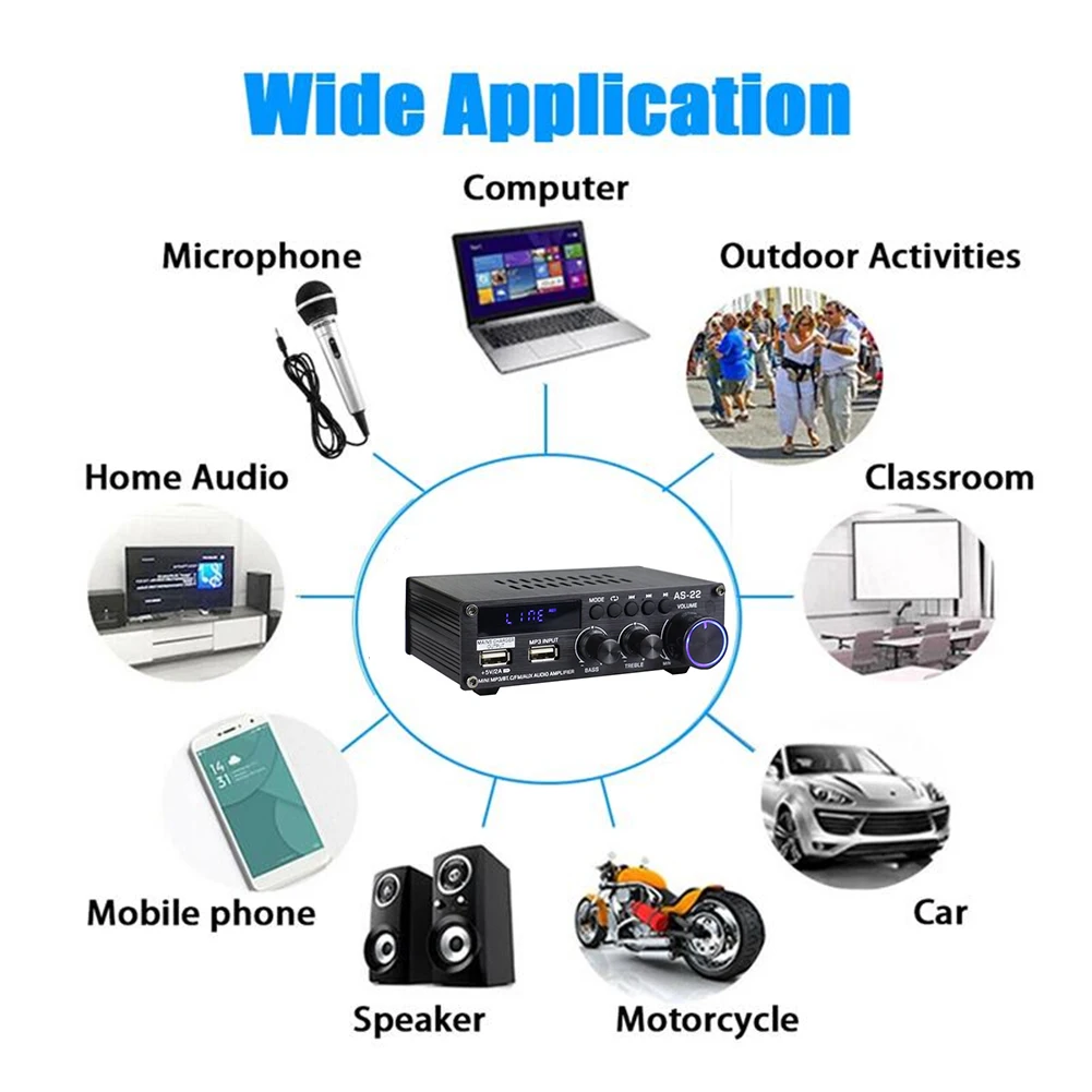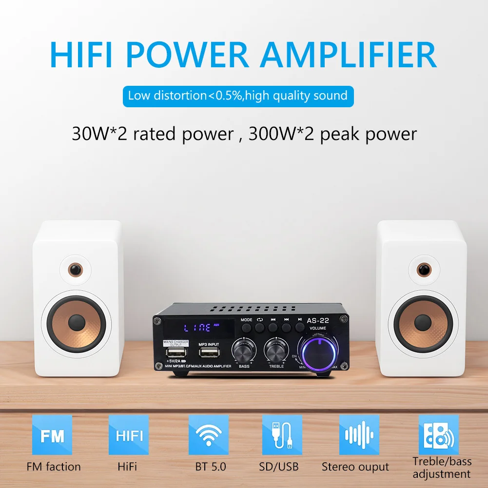 AS-22 ÇÏÀÌÆÄÀÌ µðÁöÅÐ ¾ÚÇÁ ½ºÅ×·¹¿À ¾ÚÇÁ, ºí·çÅõ½º 5.0 ¸®½Ã¹ö ¼­ºê¿ìÆÛ MP3 FM ¶óµð¿À, °¡Á¤¿ë Â÷·®¿ë, ÃÖ´ë 300W x 2, DC12V