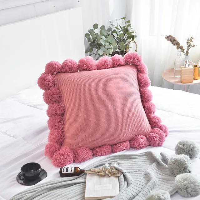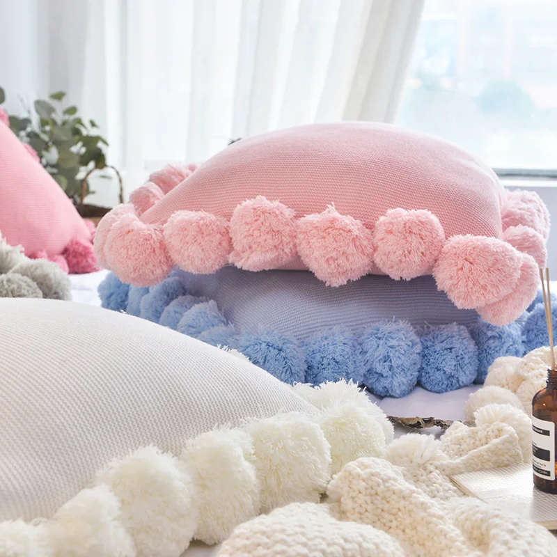 Childrens Solid Color Ball Pure Cotton Big Pillow Ins Style Pillow Wool Creative Multicolor Home Sofa Cushion Photo -Freehip.co.kr