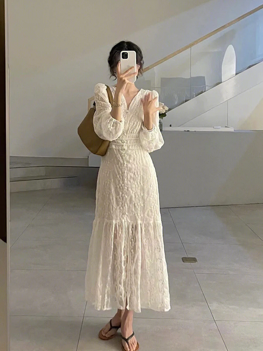±âÁú ÆÐ¼Ç ·¹À̽º ¿øÇǽº ¿©¼º 2022 º½ ±ä ¼Ò¸Å Ç㸮 Æ÷¿Ë V-neck ÀþÀº ¿Õ½Ç ÀڸнºÅ¸ÀÏ ±ä ¿øÇǽº-Freehip.co.kr