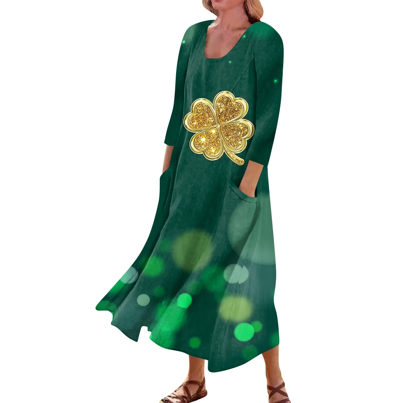 ¿©¼º¿ë ijÁÖ¾ó µå·¹½º, µ¶Æ¯ÇÑ ¼º ÆÐÆ®¸¯ÀÇ ³¯ ÇÁ¸°Æ® ¹Ìµå ¼Û¾ÆÁö µå·¹½º, ¶ó¿îµå ³Ø 3/4 ¼Ò¸Å, ¿ì¾ÆÇÑ