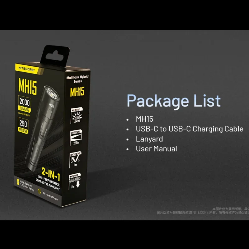 NITECORE ÃæÀü½Ä LED ¼ÕÀüµî, MH15, 2000 ·ç¸à ³»Àå, 5000mAh ¹èÅ͸®, º¸Á¶¹èÅ͸® EDC Æ®·ÎÄ¡ Æ÷ÇÔ-Freehip.co.kr