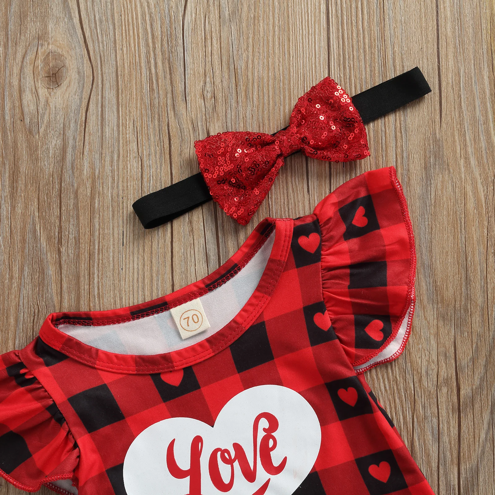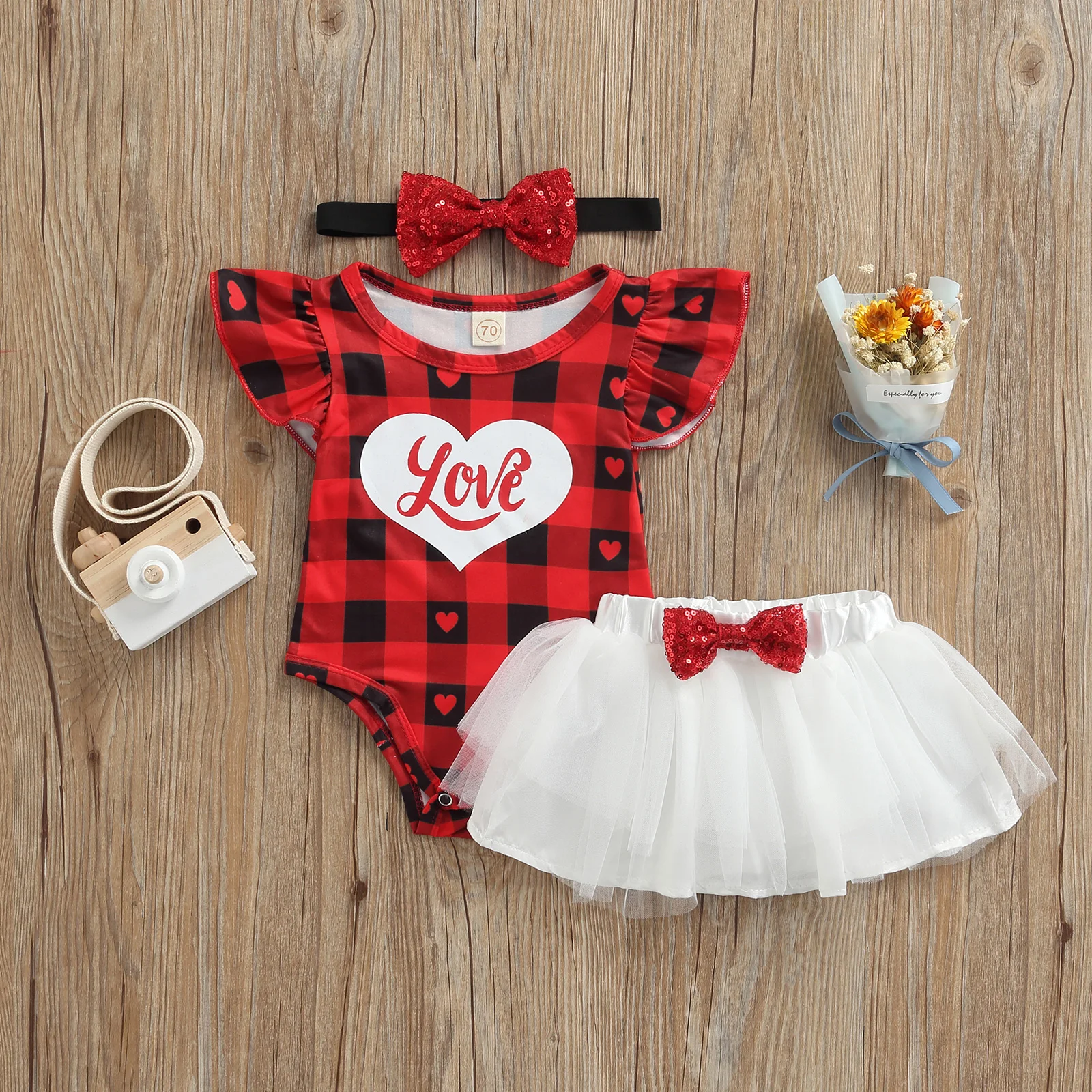 FOCUSNORM 3pcs Baby Girls ÀÇ·ù ¼¼Æ® 0-18M Love & Letter Print ªÀº ¼Ò¸Å üũ ¹«´Ì ¹Ùµð ½´Æ® + Tulle SkirtBow + Headband