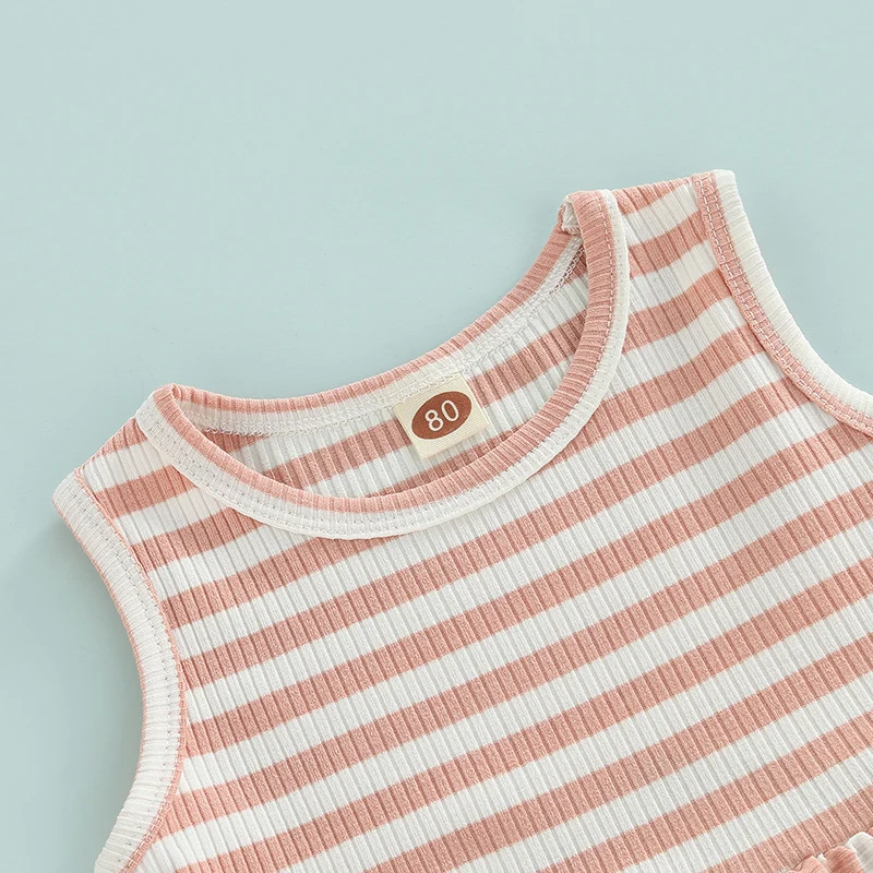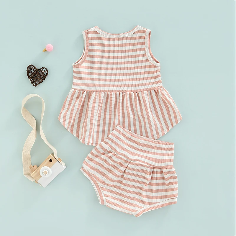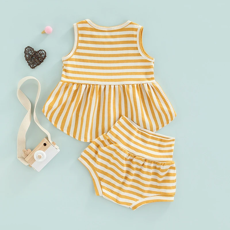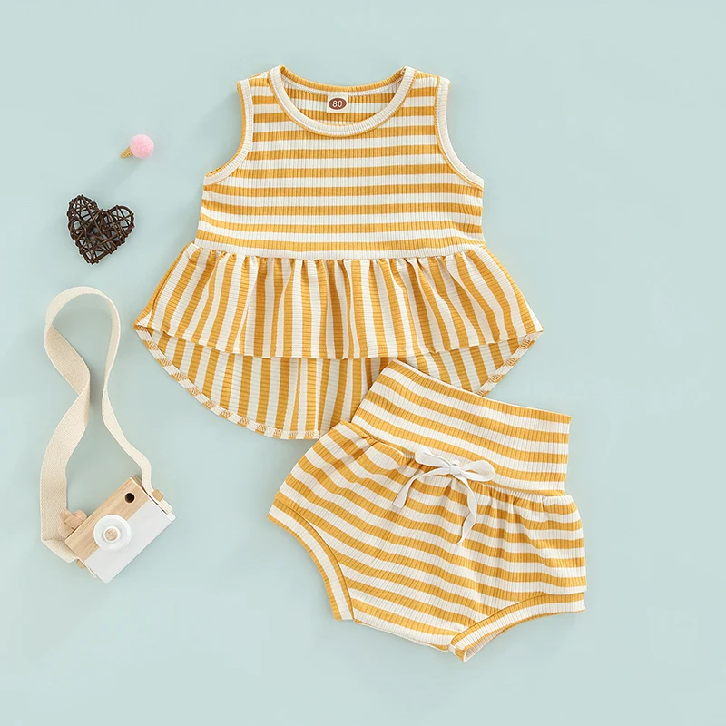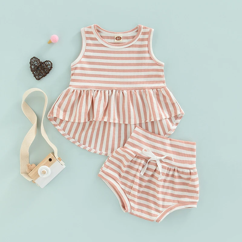 2Pcs ¼Ò³à ¿©¸§ ¿Ê ¹Î¼Ò¸Å Ruffle RibbedStriped Á¶³¢ ž + ź¼º ¹Ý¹ÙÁö Bloomers ijÁÖ¾ó ÀÇ»ó ¼¼Æ®