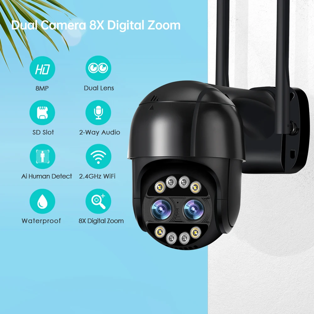 8MP 4K µà¾ó ·»Áî PTZ IP Ä«¸Þ¶ó 8x ÇÏÀ̺긮µå ÁÜ 2.8 + 12mm »ç¶÷ ŽÁö 4MP ¿Àµð¿À º¸¾È, ICsee ºñµð¿À °¨½Ã WiFi Ä«¸Þ¶ó-Freehip.co.kr