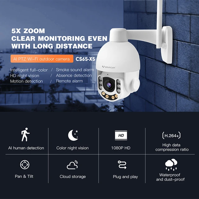 VStarcam CS65-X5 ¹«¼± ¿ÍÀÌÆÄÀÌ ¾ß¿Ü HD IP AI º¸¾È Ä«¸Þ¶ó, ±¤ÇÐ ÁÜ ¹«¼± µ¼ PTZ ¹æ¼ö IP66, 3MP, 5X ¸®¾ó ÁÜ-Freehip.co.kr