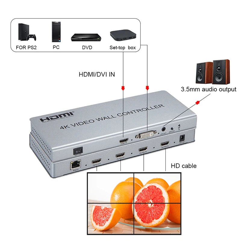 4K 2x2 HDMI TV ºñµð¿À ¿ù ÄÁÆ®·Ñ·¯ 1x3 1x4 3x1 4x1 HDMI DVI ºñµð¿À TV È­¸é ½ºÆ¼Äª ÇÁ·Î¼¼¼­ ½ºÇöóÀ̼­ (PS2 TV¿ë)