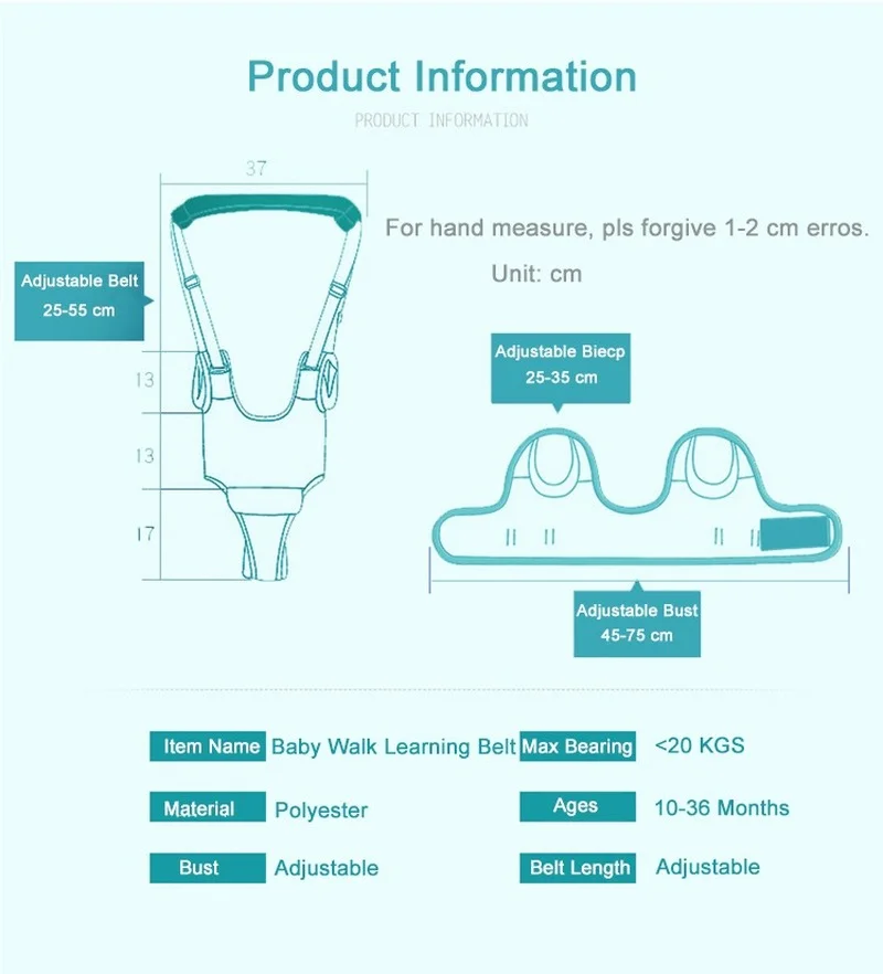 Cartoon Print Baby Walker Harness Walking Assistant Owl PatternToddler Multi-functional Walk Learning Belt Removable Crotch