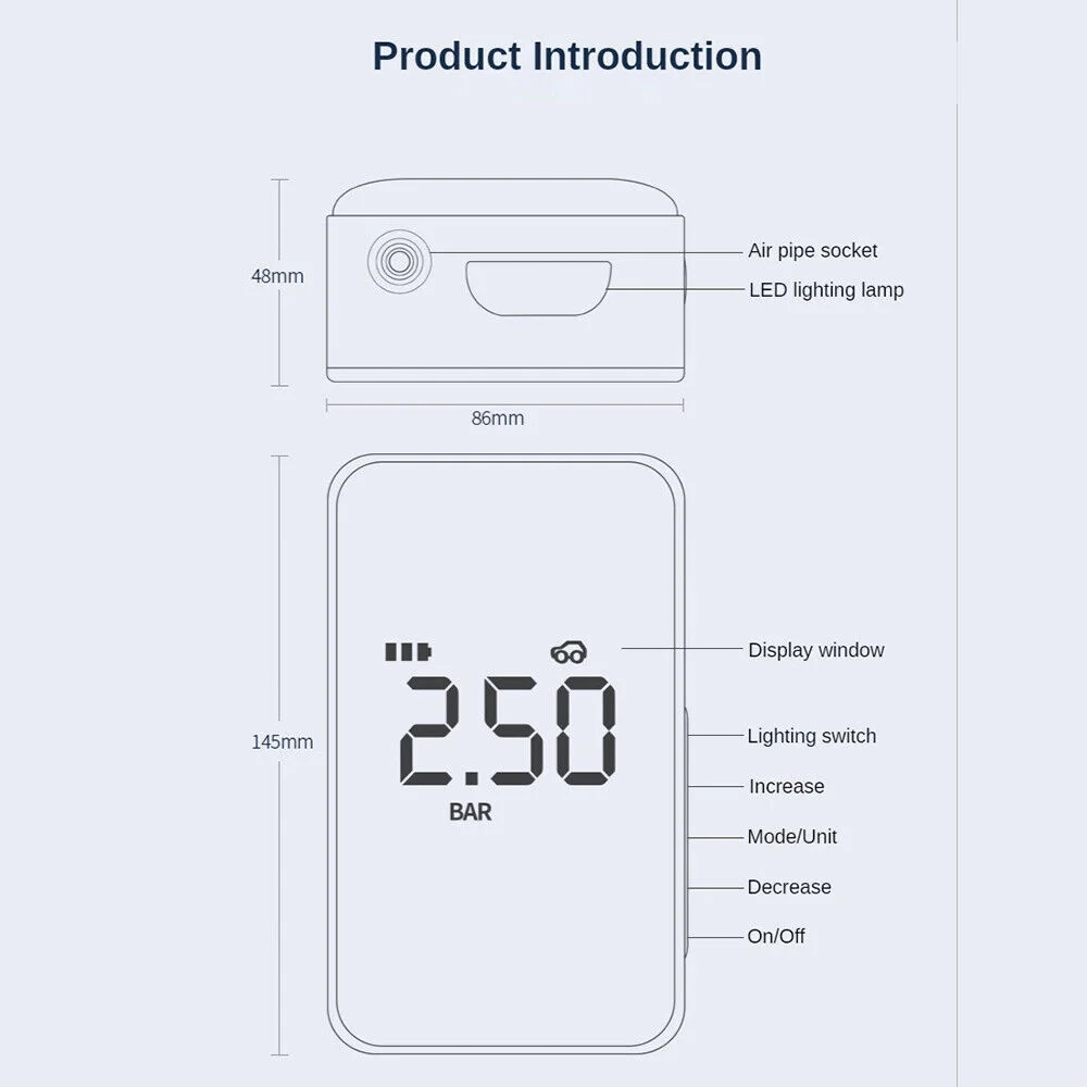 Â÷·®¿ë ÃæÀü½Ä °ø±â ÆßÇÁ, µðÁöÅÐ µð½ºÇ÷¹ÀÌ È­¸é, Àü±â ¹«¼± ¹× À¯¼±, ÈÞ´ë¿ë ŸÀÌ¾î ÆØÃ¢±â ÆßÇÁ ¾ÐÃà±â, 6000mAh-Freehip.co.kr