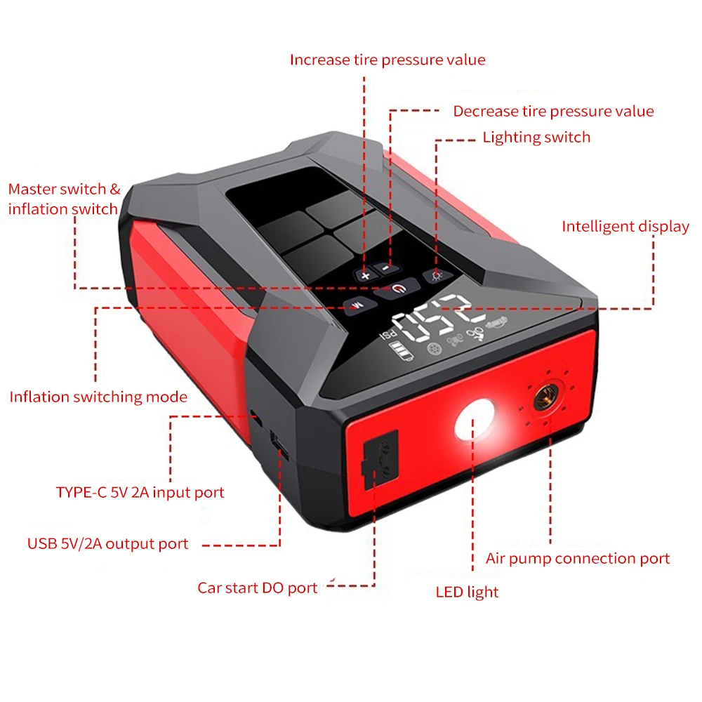 ŸÀÌ¾î ÆØÃ¢±â ÈÞ´ë¿ë °ø±â ¾ÐÃà±â, ¹«¼± Àü±â °ø±â ÆßÇÁ, Á¡ÇÁ ½ºÅ¸ÅÍ ¹× °ø±â, LED ½ºÅ©¸°, LED Á¶¸í¿ë, 10000mAh, 1000A