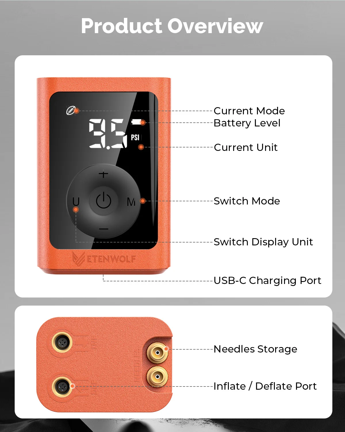 ETENWOLF P300 Plus Àüµ¿ °ø±â ÁÖÀÔ ÆßÇÁ, °ø±â ÁÖÀÔ ¹× ¹èÃâ ±â´É, ³ó±¸°ø¿ë 3200mAh ¹èÅ͸® ¿¡¾î ÆßÇÁ Æ÷ÇÔ
