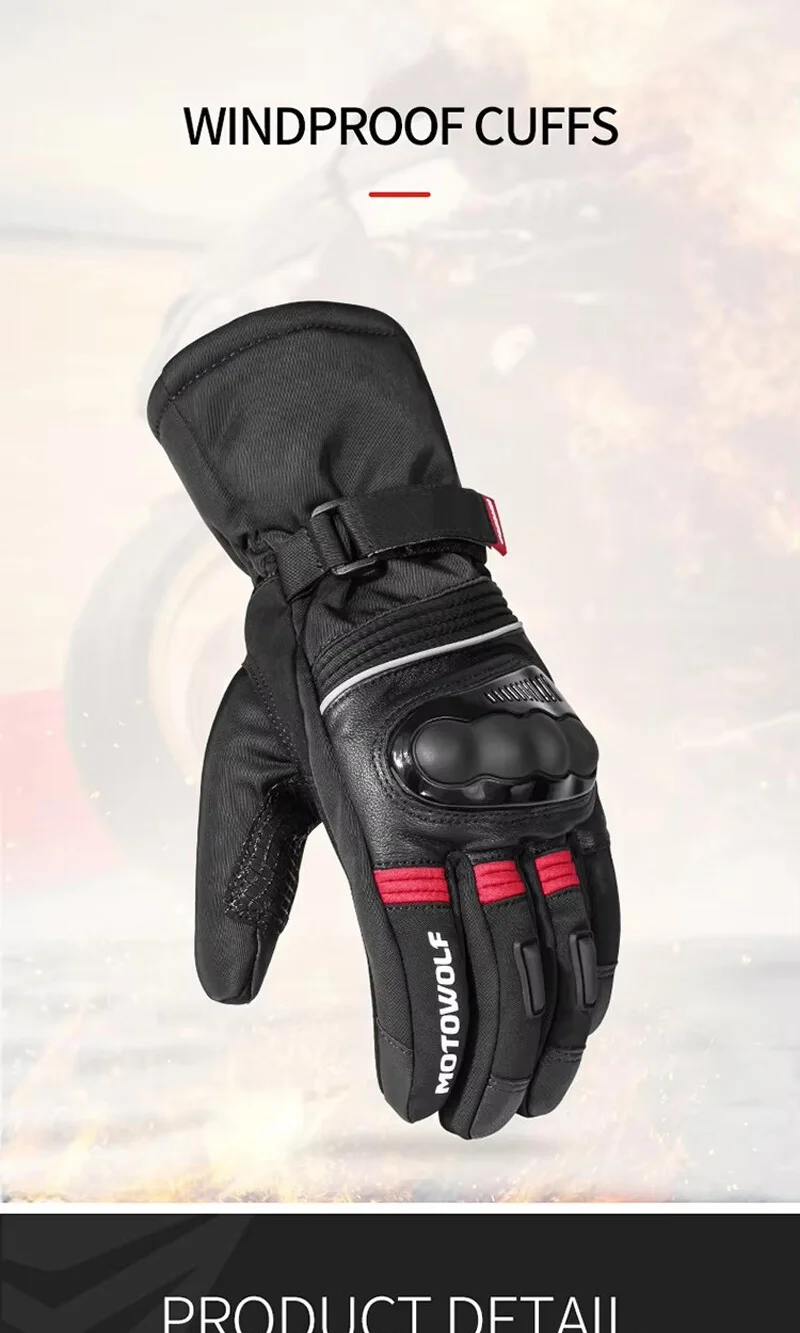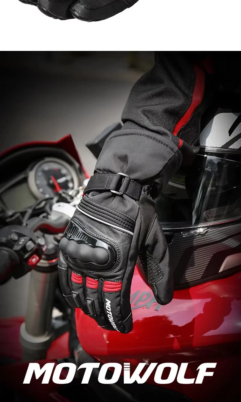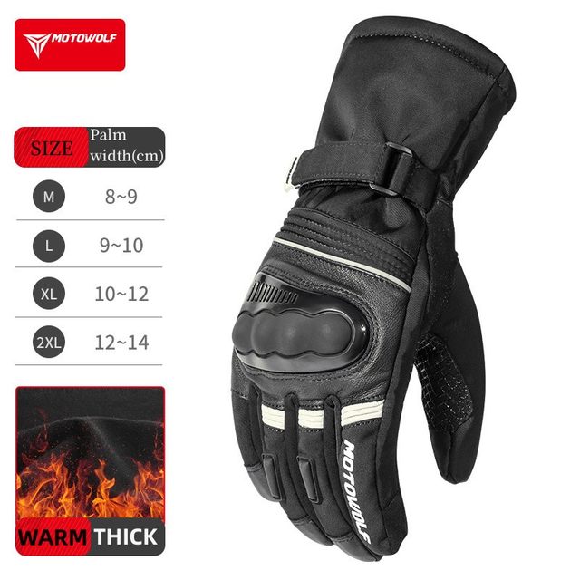Motowolf Winter Motorcycle Thermal Gloves Men Waterproof Biker Gloves Fleece Windproof Motocross Gloves Leather Moto Equipment
