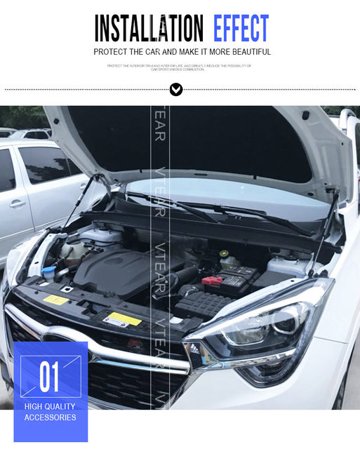 - Feature 2: ront Hood Engine Cover Hydraulic Support Rod Strut Spring Shock Bar