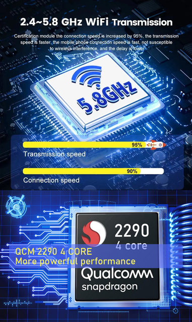 ?안정적이고 낮은 대기 시간 무선 연결을 달성하는 강력한 WiFi 수신 성능. 이미지 지연 없음, 오디오 손실 없음