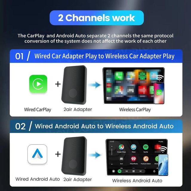 ?하나의 상자는 두 개의 채널을 지원합니다. Cayplay 및 Android 자동 2 in 1, 연결은 간단합니다. 처음 구성에 성공하면 다음에 자동으로 연결됩니다.