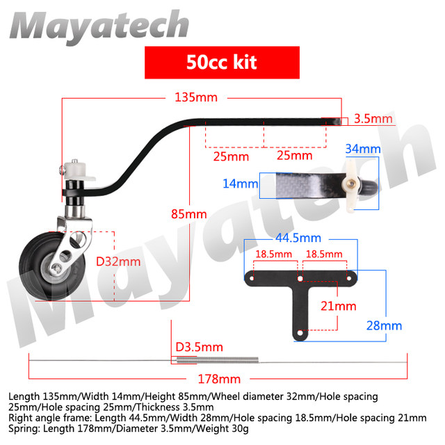 50CC 테일 휠 * 1 + 스티어링 T-암 * 1 + 자동 잠금 나사 대형 * 3 + 자동 잠금 나사 소형 * 2 + 스티어링 스프링 * 2