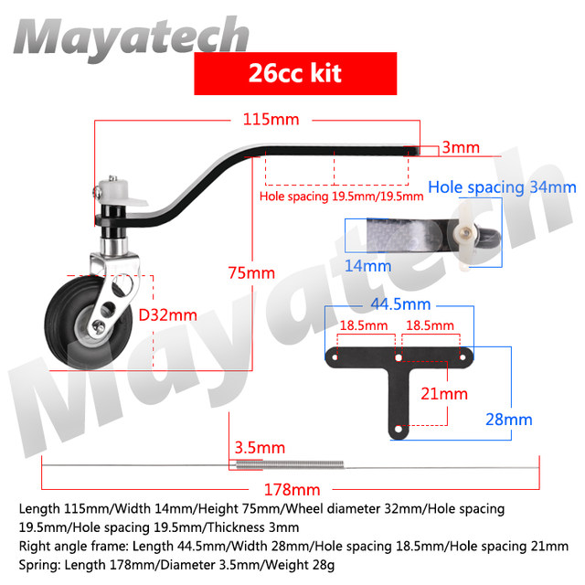 26CC 테일 휠 * 1 + 스티어링 T-암 * 1 + 자동 잠금 나사 대형 * 3 + 자동 잠금 나사 소형 * 2 + 스티어링 스프링 * 2
