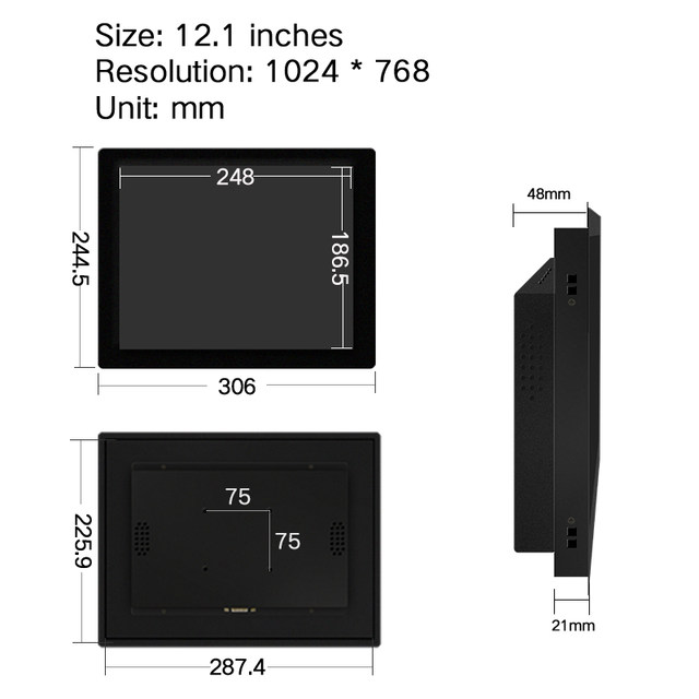 12.1 인치/12 "터치 스크린 디스플레이가 아닌 산업용 Mo nitor 1024*768