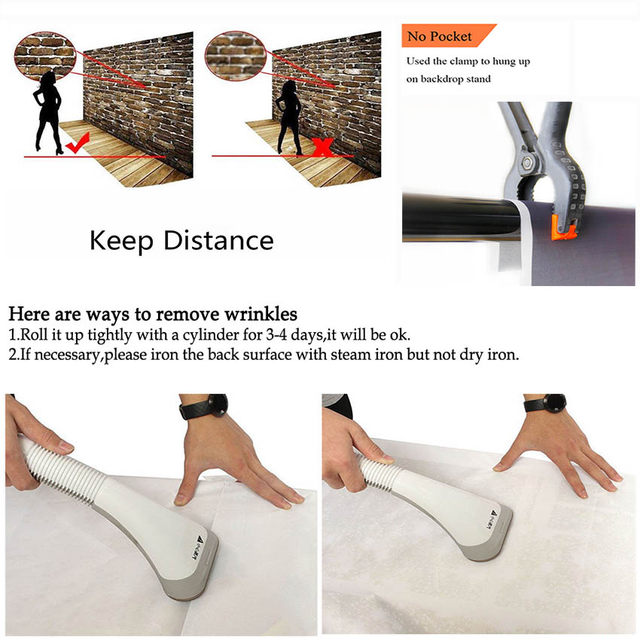 The backdrops need keep distance to take pictures. Different lighting will have different shooting effect,you can try to adjust the lights to make your photos better.