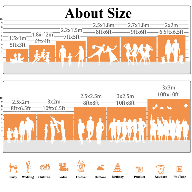 Our mainly backdrops are usedfor Baby Shower, Child, Adults, Family, Wedding, Bridal Shower, Stage, Play, Birthday&Holiday Party, Senior Prom, Cake&Food photography.