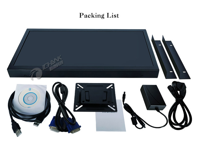 모니터 * 1/전원 어댑터 * 1/벽걸이 브래킷 * 1/오픈 프레임 브래킷 * 2/USB 케이블 * 1/VGA 케이블 * 1/터치 스크린 드라이버 CD * 1/사용자 설명서 * 1 (일반 버전, 참조 용); |