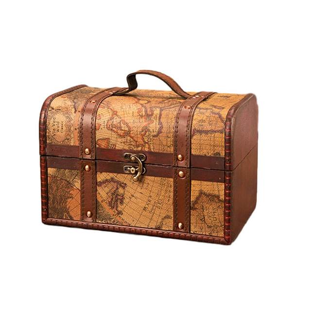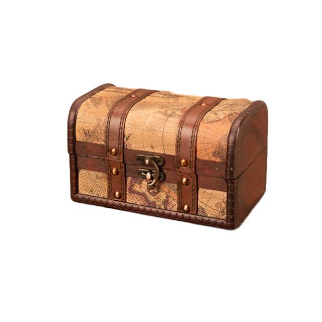 레트로 우아한 합판 가죽 해적 보석 보관함 잠금 주최자 홈 장식을위한 빈티지 보물 상자
