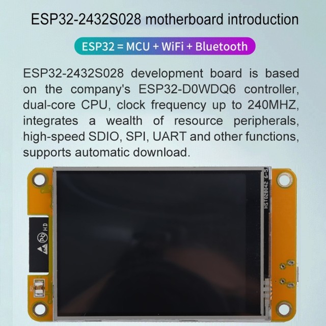 ESP32-2432S028R °³¹ß º¸µå´Â ESP32-D0WDQ6 ÄÁÆ®·Ñ·¯¸¦ ±â¹ÝÀ¸·ÎÇÕ´Ï´Ù.