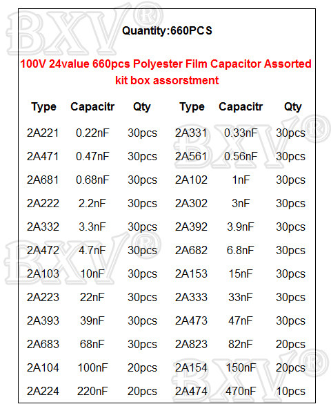 - ¸ðµ¨ ¹øÈ£: 0.22nF - 470nF Polyester Film Capacitor Kit