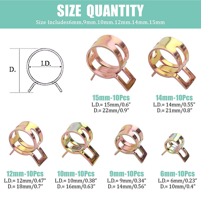 È£½º, °ø±â È£½º, ¼öµµ°ü, ÀÚµ¿Â÷ ¿¬·á ¶óÀÎ, ½Ç¸®ÄÜ È£½º µîÀÇ ÇÏÀÌ Ä÷¸®Æ¼ ½ºÇÁ¸µ Ŭ¸³ ÀçÁú: 65Mn ½ºÇÁ¸µ ½ºÆ¿ ÆÐŰÁö ¼ö·®: 72 °³ ÆÐŰÁö Æ÷ÇÔ: 10x6mm -------------------------------- 10 °³ 10x9mm -------------------------------- 10 °³ × 10mm ------------------------------ 10 °³ 10x12mm ------------------------------