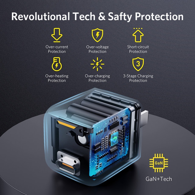 Built-in reliable GaN+ chip set from Power Integration makes you charge any device safely and efficiently with confidence.