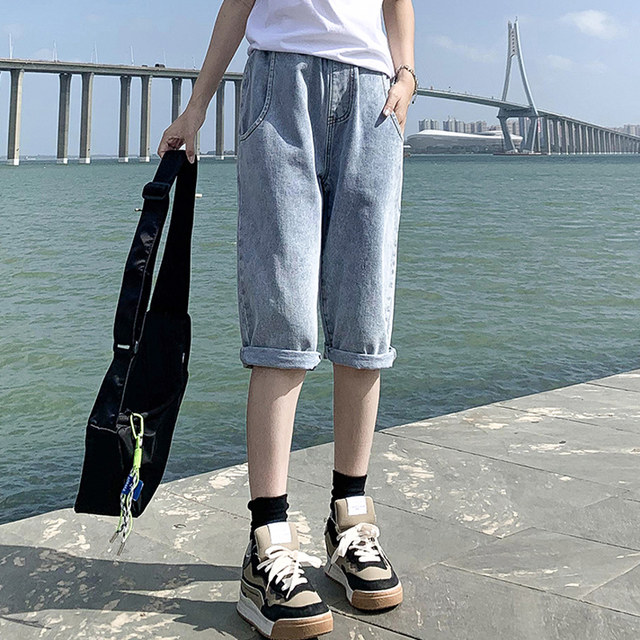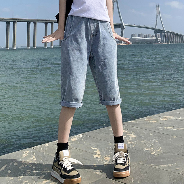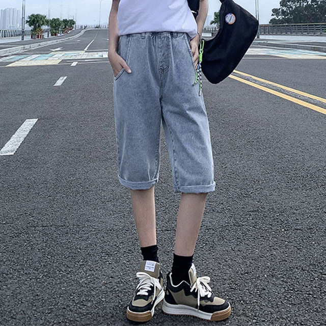 [(-1)Light blue elastic waist [back pants popular online popular pants high street fashion ins high waist youth womens pants Xintang jeans Womens American oversize pants]]]