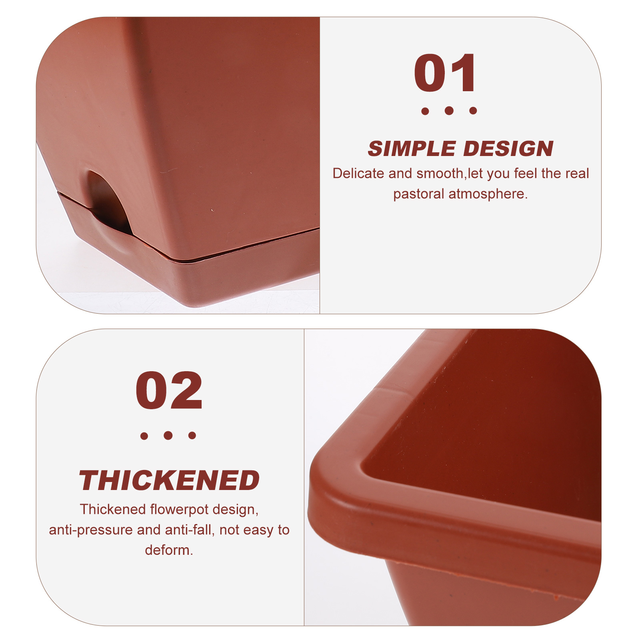 This planter is made of materials for long- lasting and practical use. Simple rectangular design and bottom drainage design are convenient for flower pot drainage. There is also a planter saucer. suitable for balcony, patio, or desk decoration. This flowerpot can be a gift for friends, family and colleagues.